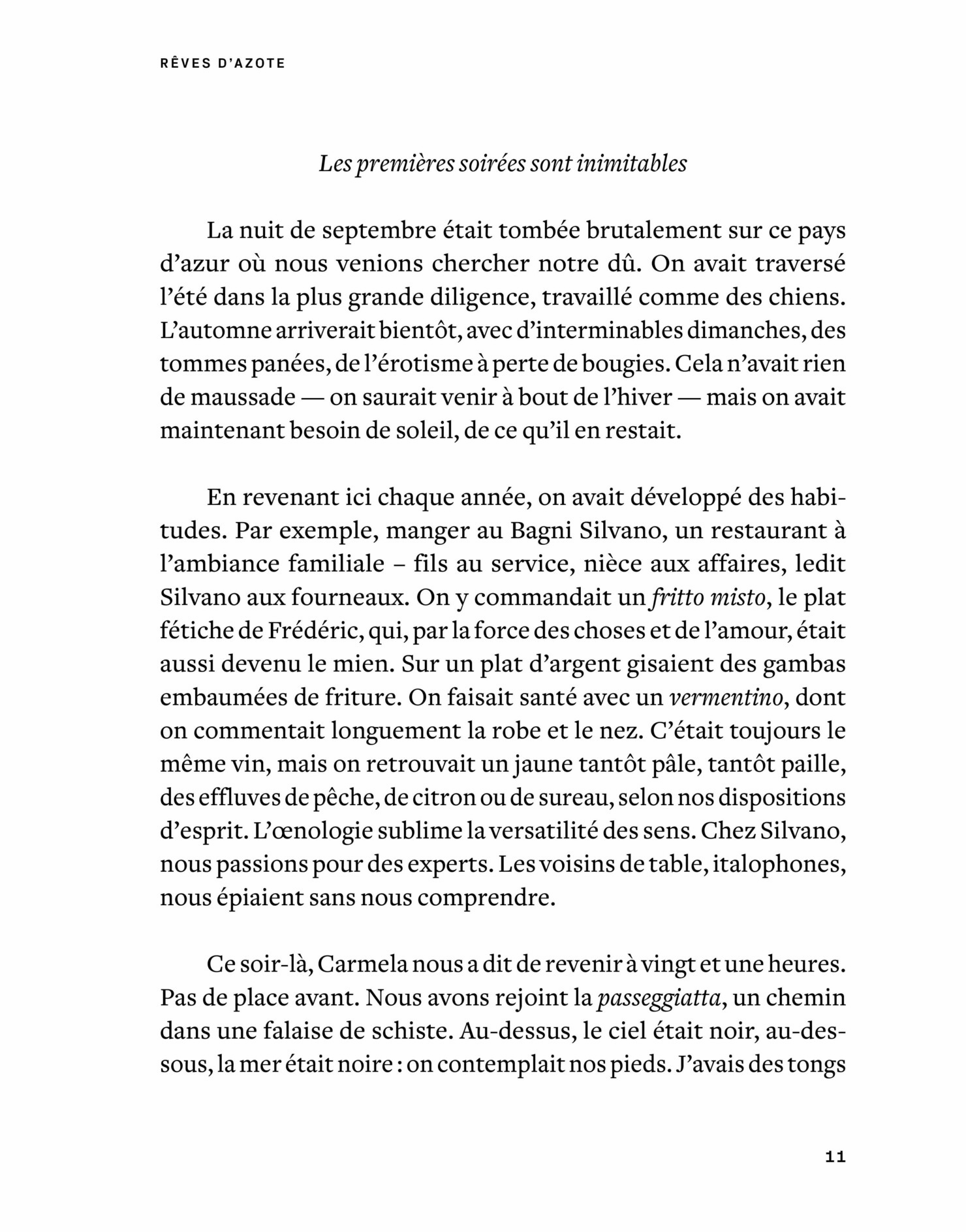 En tant que maison d’édition, nous avons été séduits par la justesse du style et l’inventivité du propos de Rêves d’azote. Dans une langue résolument maîtrisée, sans pour autant être inaccessible ou surjouée, Claire May a le talent pour donner de l’importance au quotidien, au détail, à la coïncidence, ainsi qu’au tragique de l’existence. Ne pas réussir à tenir la vie dans son ventre, (se) raconter des histoires, tenir à bout de corps la conscience, voir des signes du destin, creuser dans les histoires et les mémoires familiales, tous ces éléments distincts semblent difficiles à tenir ensemble, et pourtant, chez Claire May et son écriture englobante, tout semble faire sens. Nous ressortons de sa lecture plus confiant·es et érudit·es qu’au début de la lecture, touchée par cette étrange irruption involontaire de la philosophe Vinciane Despret et de son livre, lui-même apte à engendrer d’autres ouvrages par sa suite. Véritablement, Claire May livre ici un ouvrage de la procréation et de l’engendrement : entre Genèse et filiation. Entre des recettes de raviolis, des glaces à la myrtille, l’anodin et le vital s’entrechoquent, trouvant une voie de sortie, la littérature.